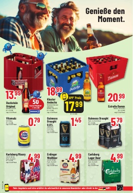 Wenn Sie unseren Markt betreten, finden Sie auf der rechten Seite die riesige Auswahl an Biersorten. Zuerst kommen alle 6-Packs und Bier Dosen, dann alkoholfreies Bier und Radler und Weizenbier, dunkles Bier, Hefeweizen Kristall und Dunkel, Berliner Weisse, Kellerbier, Landbier, Bockbier, Premium-Biere, Eigenmarken, z. B. Traugott Simon, und regionale Biersorten wie Herrenhäuser, Härke, Gilde Pilsener und Einbecker. Die Auswahl ist sehr groß, natürlich gibt es auch immer die In-Getränke, die gerade z. B. im Fernsehen beworben werden (Schöfferhofer Mix, Beck´s Green Lemon, Ginger Beer). Und ganz regional gibt es bei uns auch das Sarstedter Bier.