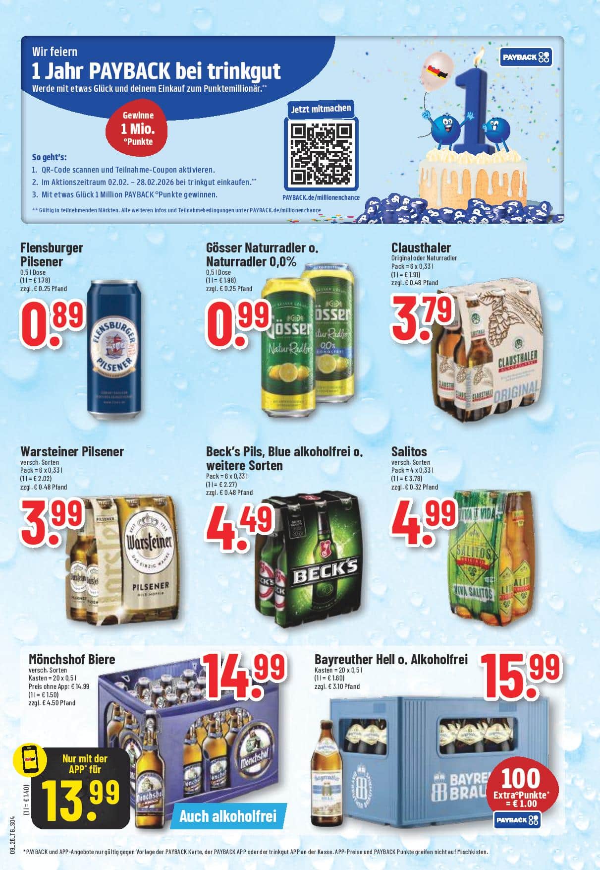 Zuerst kommen alle 6-Packs und Bier Dosen, dann alkoholfreies Bier und Radler und Weizenbier, dunkles Bier, Hefeweizen Kristall und Dunkel, Berliner Weisse, Kellerbier, Landbier, Bockbier, Premium-Biere, Eigenmarken, z. B. Traugott Simon, und regionale Biersorten wie Herrenhäuser, Härke, Gilde Pilsener und Einbecker. Die Auswahl ist sehr groß, natürlich gibt es auch immer die In-Getränke, die gerade z. B. im Fernsehen beworben werden (Schöfferhofer Mix, Beck´s Green Lemon, Ginger Beer). Und ganz regional gibt es bei uns auch das Sarstedter Bier.